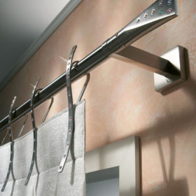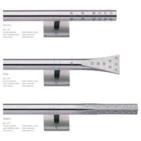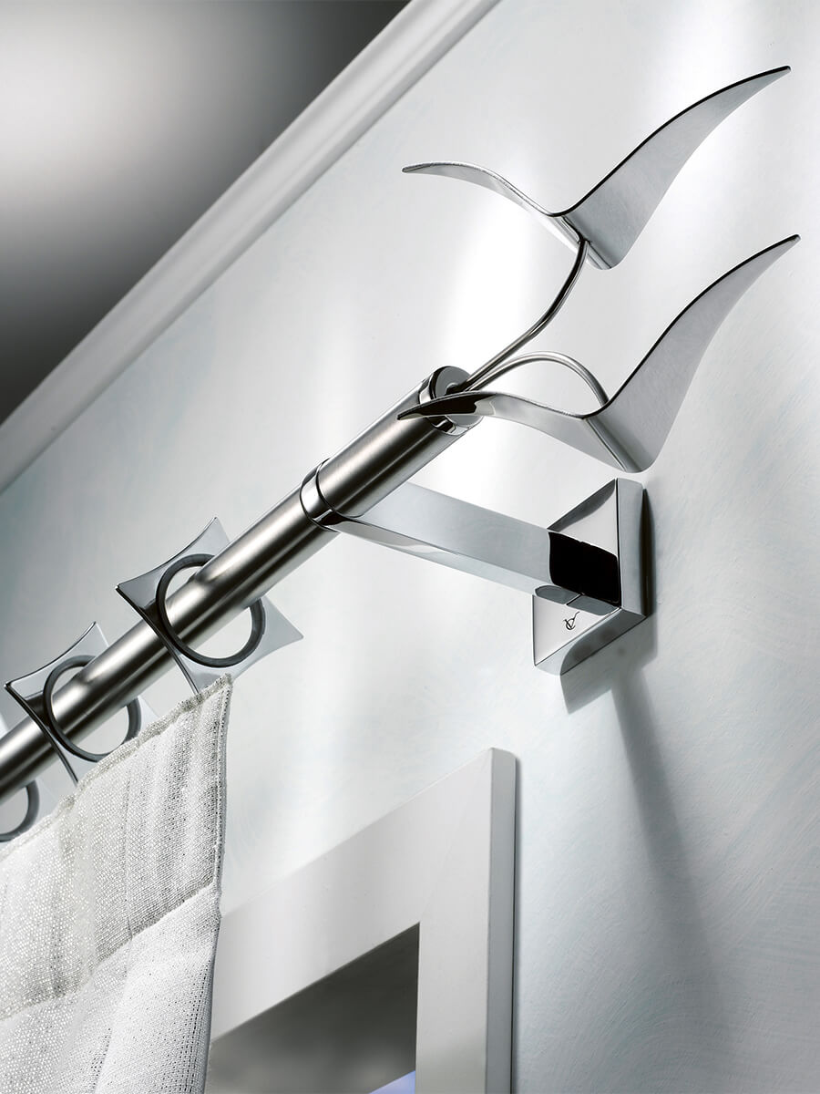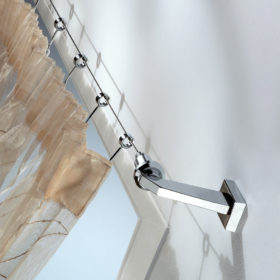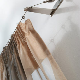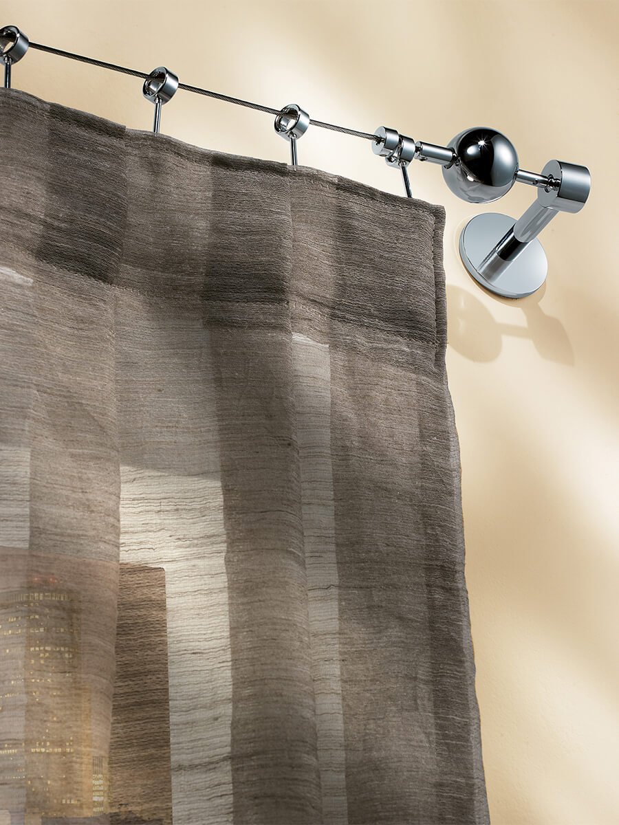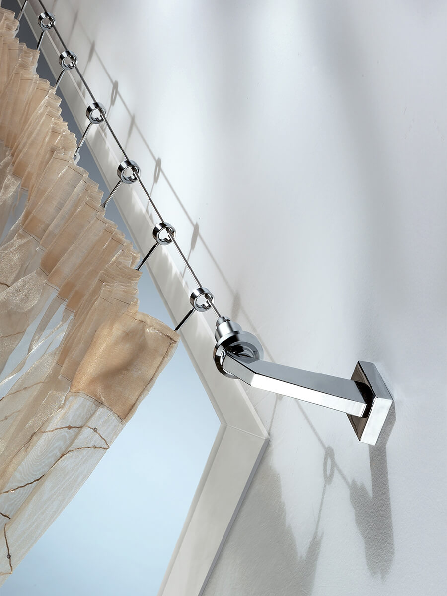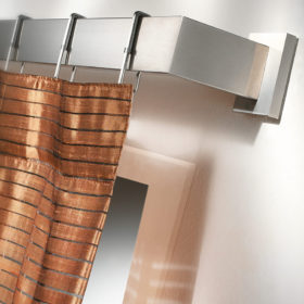 La renovación de lo clásico es lo que resume un sistema de cortinas de acero. Las cortinas deslizantes y los tensores hechos de este material responden a las necesidades de elegancia, solidez, funcionalidad, resistencia y durabilidad a lo largo del tiempo, cualidades que enriquecen y no reemplazan los principios de forma y función que están en la base de todas las creaciones de Casa Valentina. Son soluciones versátiles que se integran en perfecta armonía en espacios y ambientes que aprovechan el diseño evolutivo del acero para dar una impronta reconocible de modernidad vibrante. Dentro de nuestro departamento de producción, este metal se moldea en diversas formas geométricas, perfeccionadas en un número cada vez mayor de variantes. La sensación de frialdad asociada al acero se atenúa mediante la refinada combinación de terminales y accesorios con acabados en tonos más cálidos.